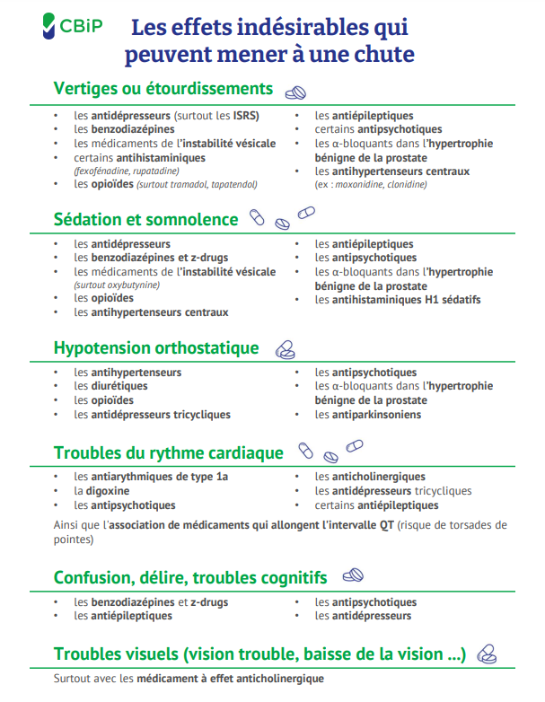 Dans l’e-learning « Médicaments et risque de chute », vous apprendrez à identifier les médicaments à risque ainsi que les effets indésirables qui peuvent mener à une chute.