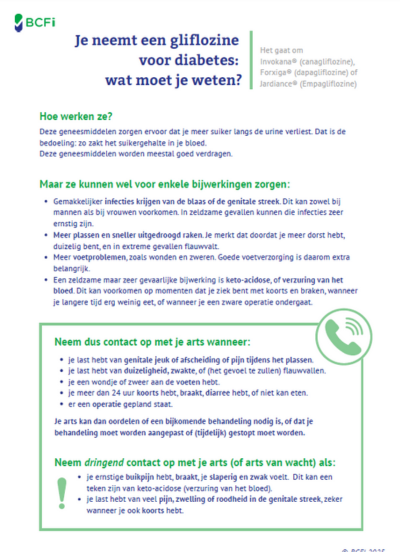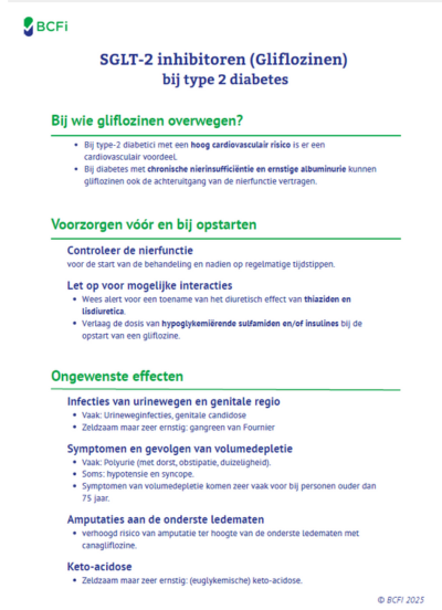 Heb je de e-learning ‘Gliflozinen (SGLT2-inhibitoren) bij type 2-diabetes’ doorlopen? Dan kan je hier een handige samenvatting en patiëntenbrief downloaden.