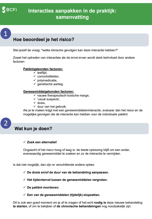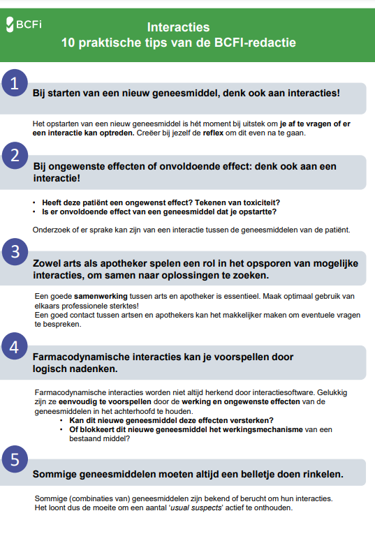 In de reeks e-learnings ‘Interacties‘ leer je om vol vertrouwen om te gaan met medicamenteuze interacties aan de hand van een handige lijst met praktische tips. We herinneren je ook aan de geneesmiddelen die bekend of berucht zijn om hun mogelijke interacties (de “usual suspects”).